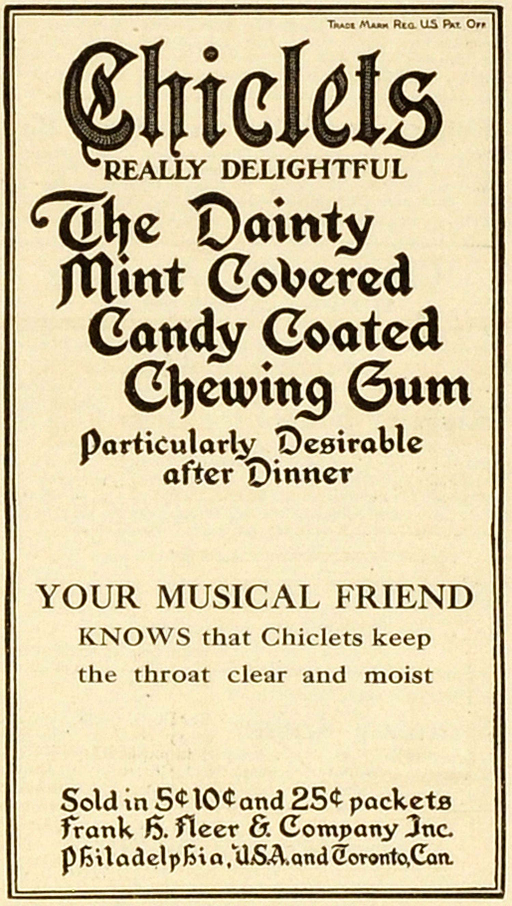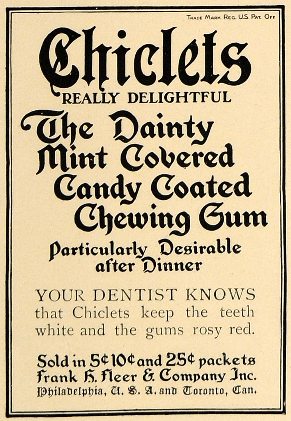 1909 Ad Chiclets Gum Frank H Fleer Philadelphia Cadbury - ORIGINAL OD3