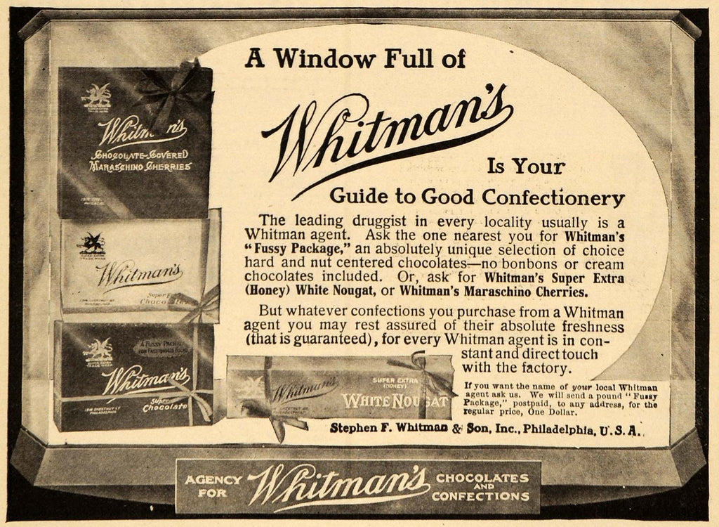 1909 Ad Stephen F Whitmans & Sons Co Chocolates Box - ORIGINAL ADVERTISING EM2