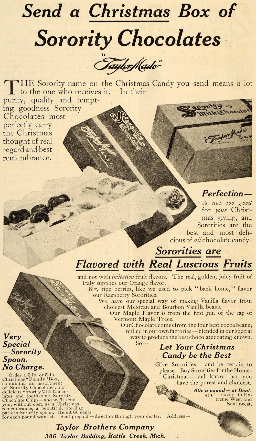 1909 Ad Christmas Sorority Chocolates Taylor Brothers - ORIGINAL ADVERTISING OD1