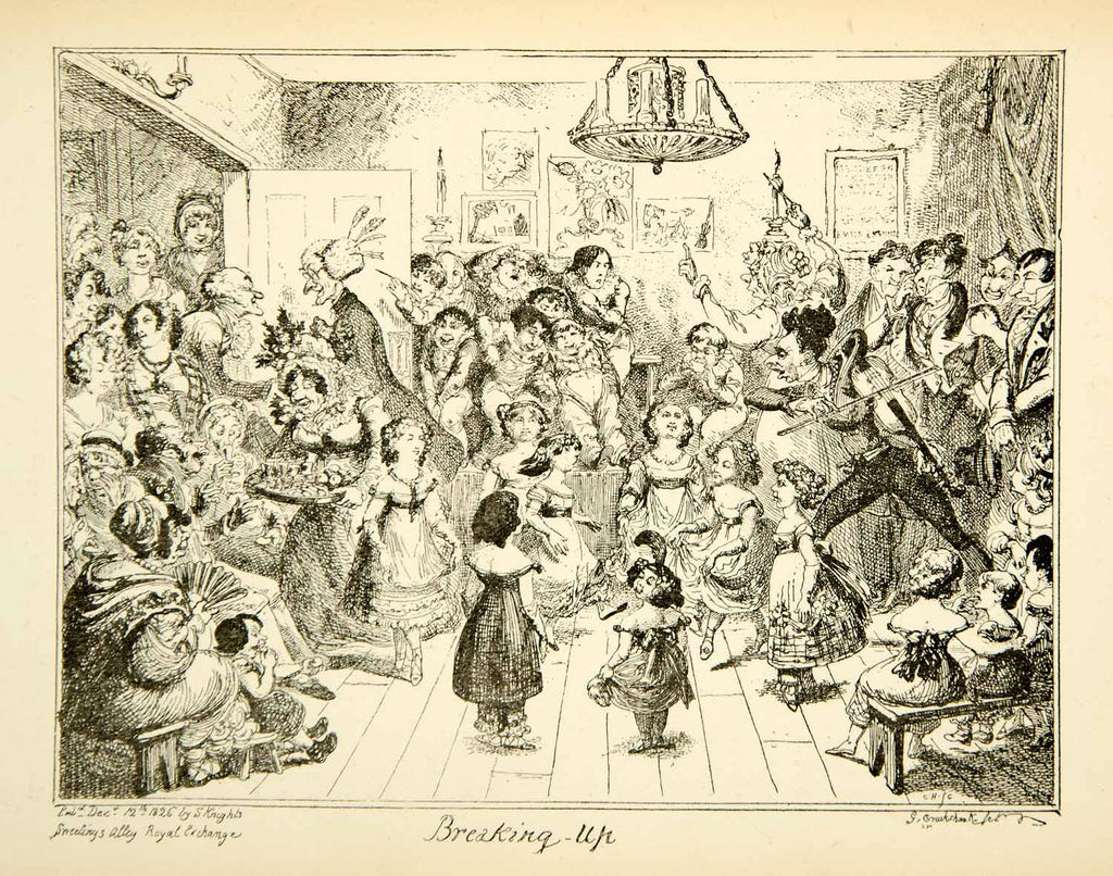 1891 Print Breaking Up George Cruikshank Cartoon Dancing Salon Room Violin XAGA5