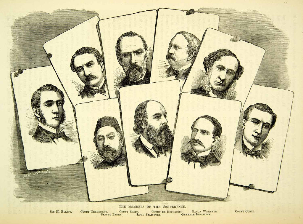 1883 Wood Engraving Constantinople Conference Russo Turkish War Members XEGA3