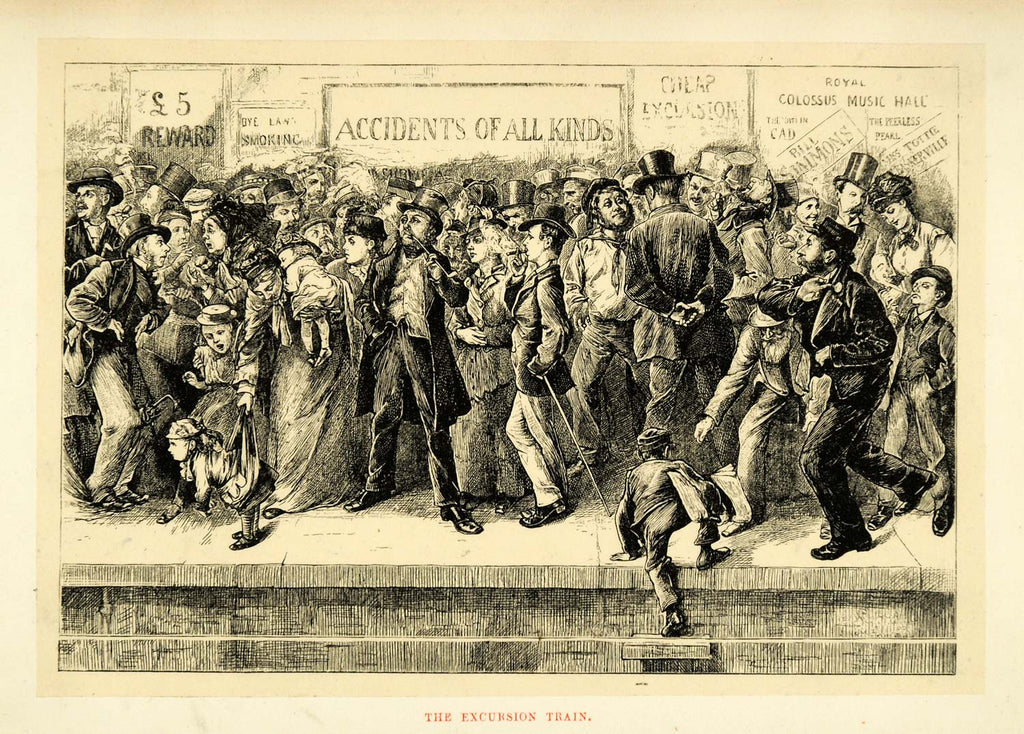 1883 Tipped-In Wood Engraving George Augustus Sala Costume Sketch Train XGF8