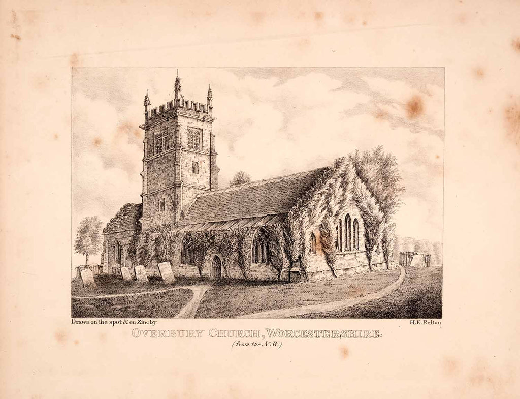 1843 Zinc Lithograph Overbury Church Worcestershire England Relton St Faith RES1