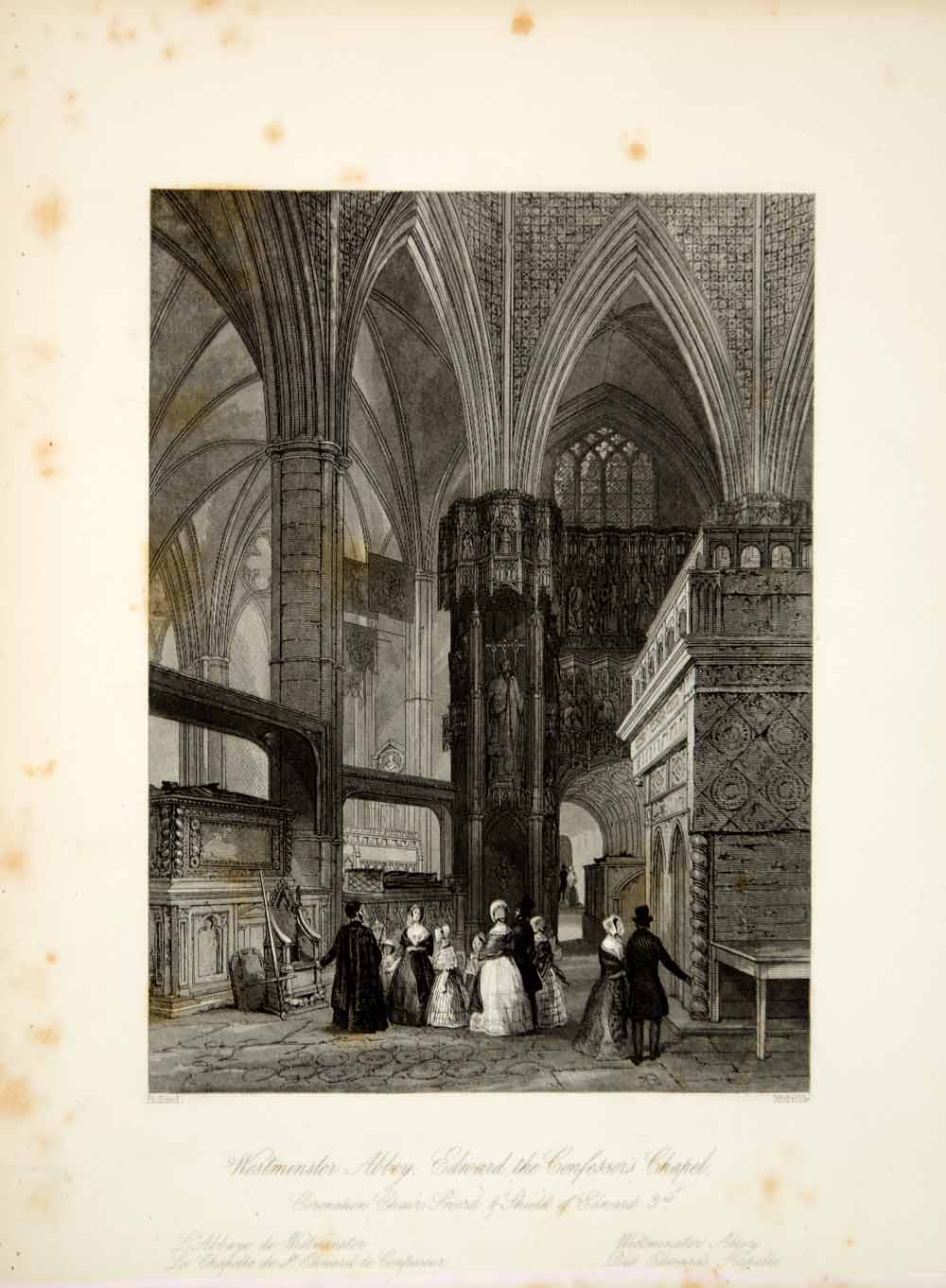 1845 Steel Engraving J Holland Westminster Abbey Edward Confessors Chapel XGHD9