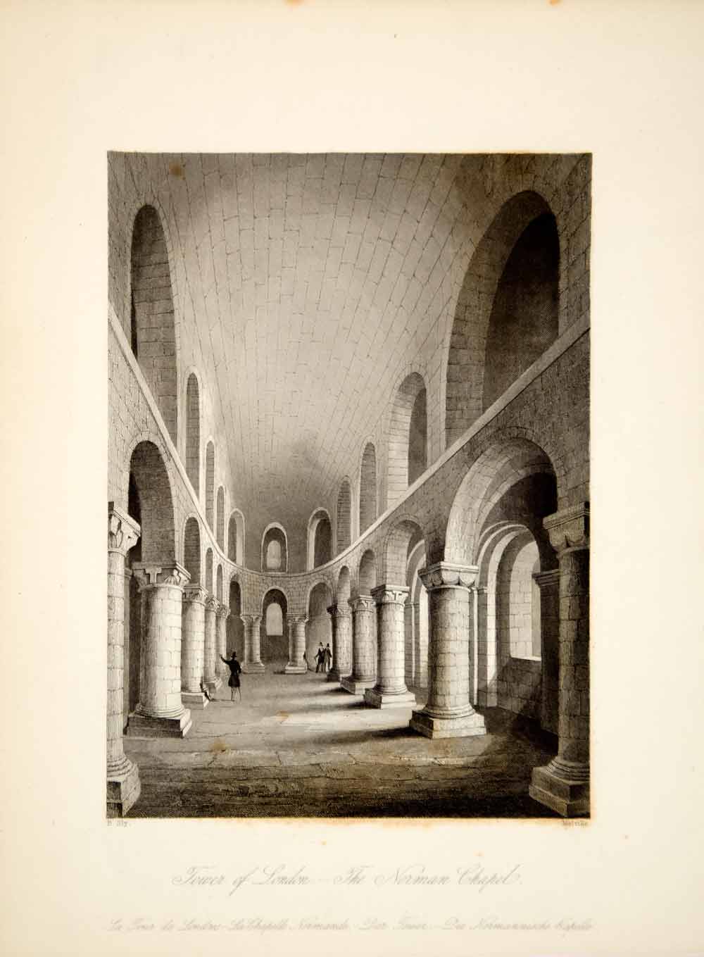 1845 Steel Engraving B Sly Tower of London St Johns Chapel Norman XGHD9