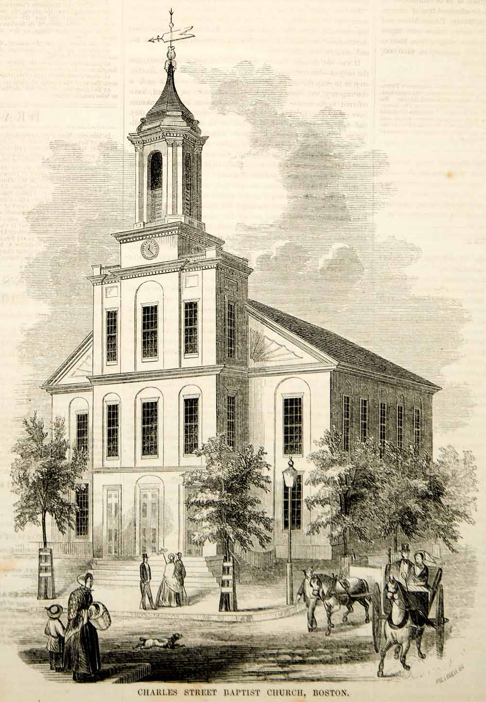 1853 Wood Engraving Charles Street Baptist Church Boston Asher Benjamin Historic