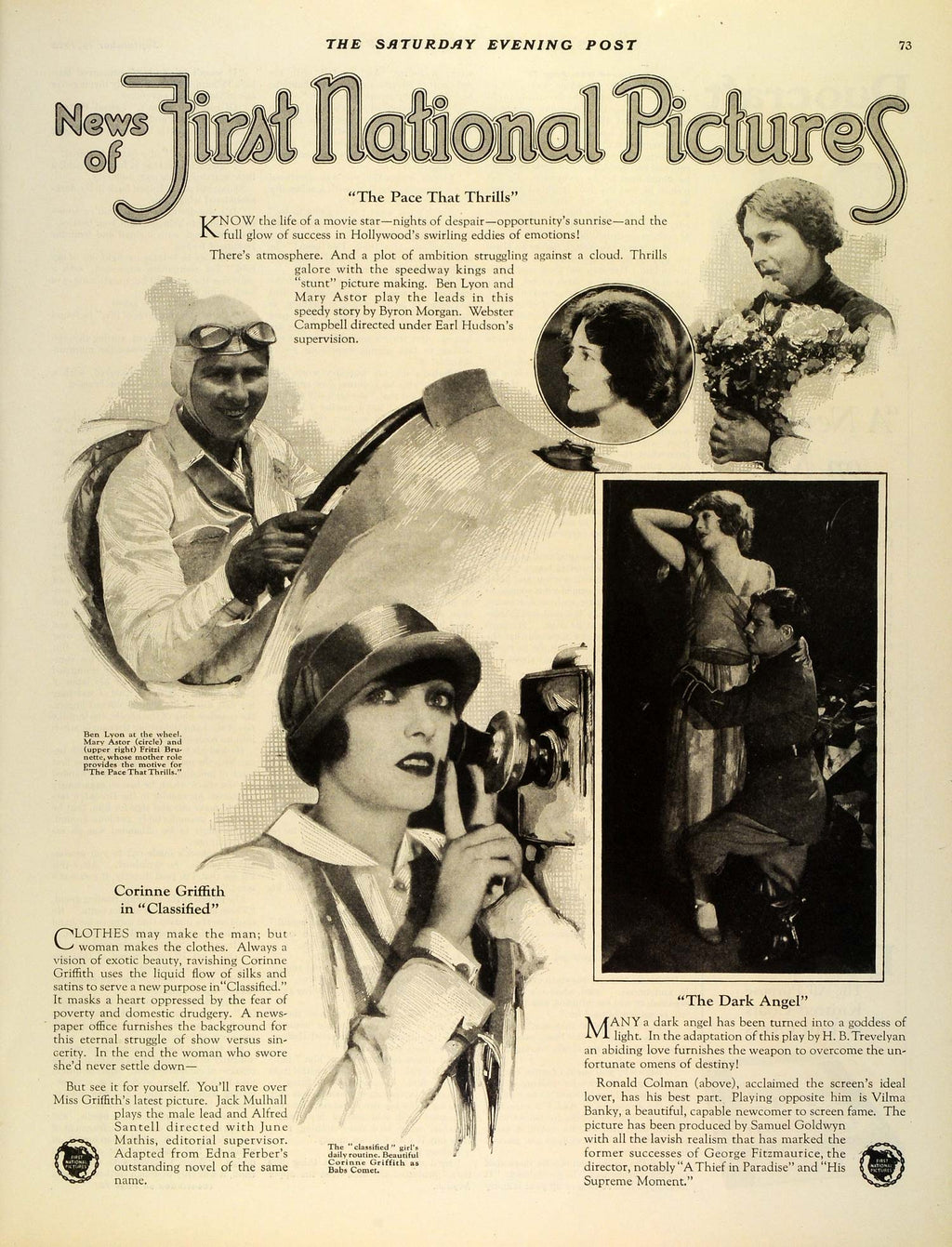 1925 Ad First National Pictures Ben Lyon Corinne Griffith Trevelyan Mary SEP5