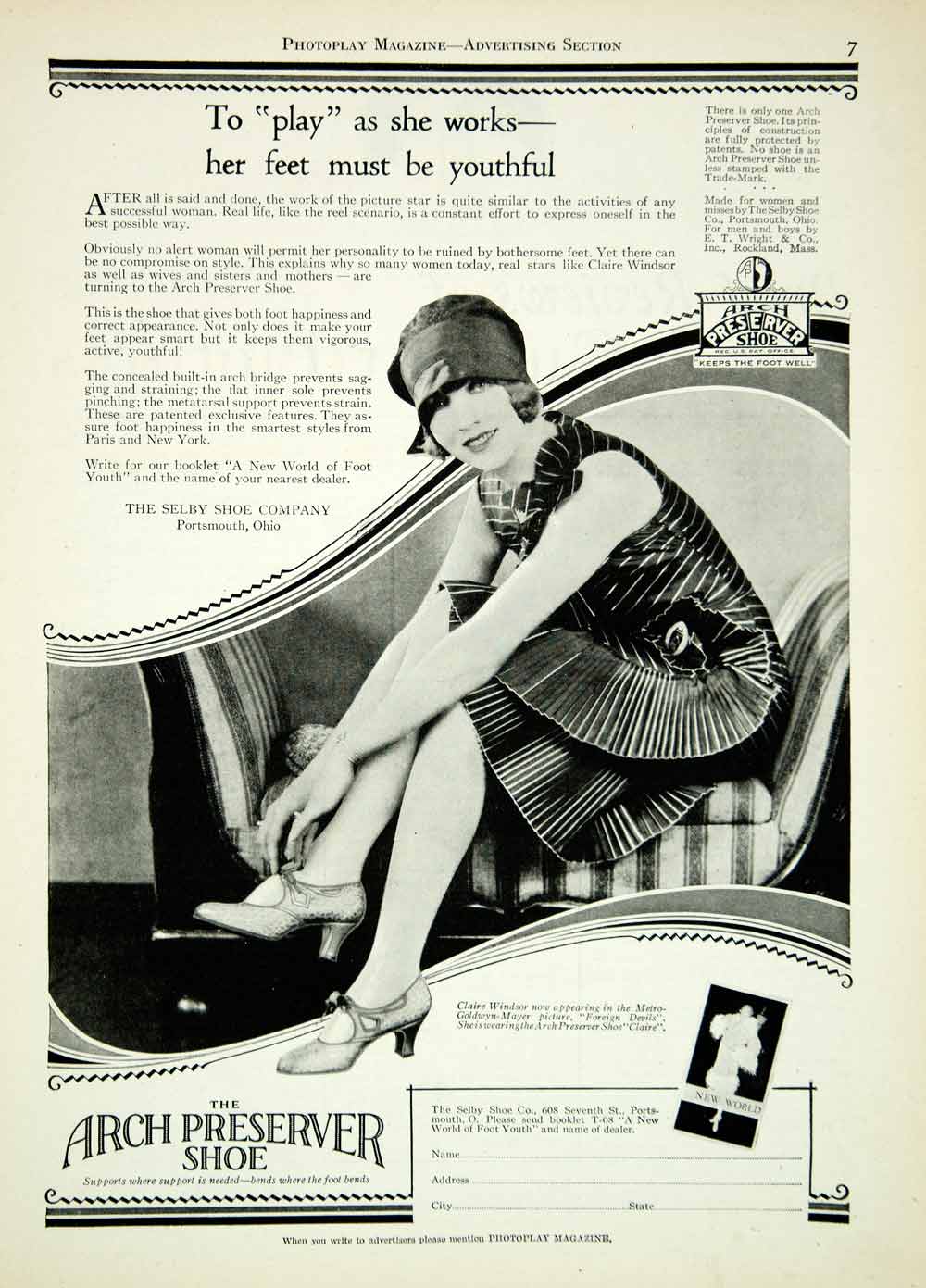 1927 Ad Vintage Arch Preserver Shoe Claire Windsor Silent Film MGM Star YPP3