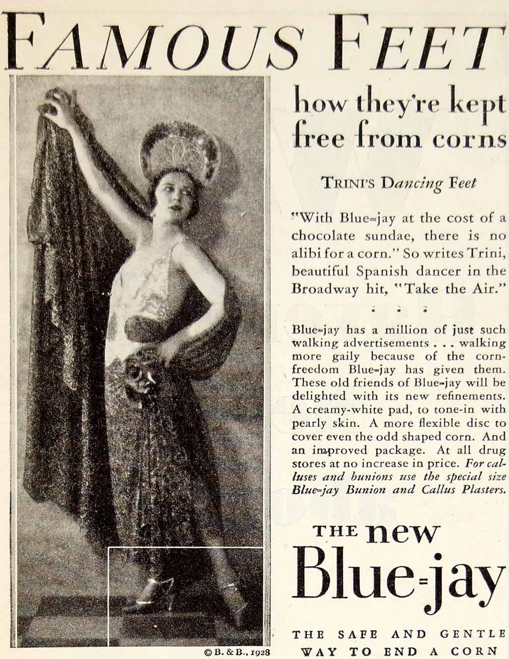 1928 Ad Blue Jay Famous Feet Callus Bunion Plaster Trini Spanish Dancer YWW1