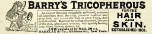 This is an original 1891 black and white print ad for Barry's Tricopherous from Barclay and Company from New York.