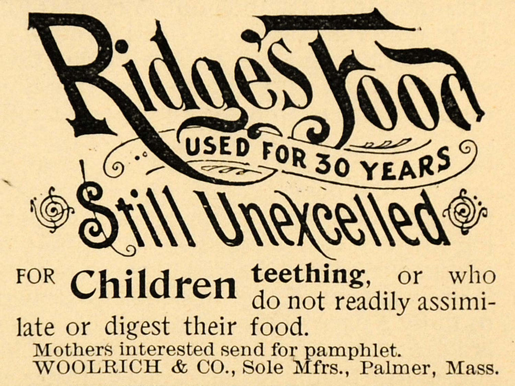 1893 Ad Woolrich & Co. Ridges Food for Children Palmer - ORIGINAL LHJ4