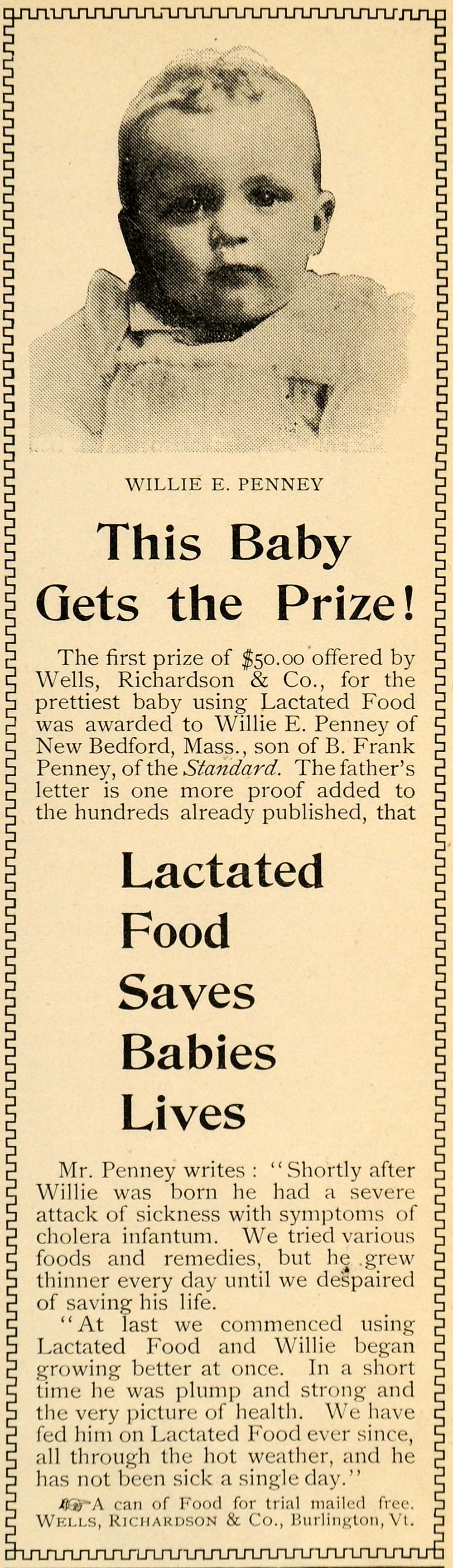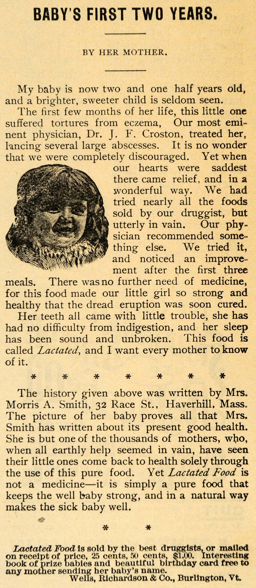 1893 Ad Wells Richardson Co. Lactated Food Babies Breast Milk Substitute LHJ4