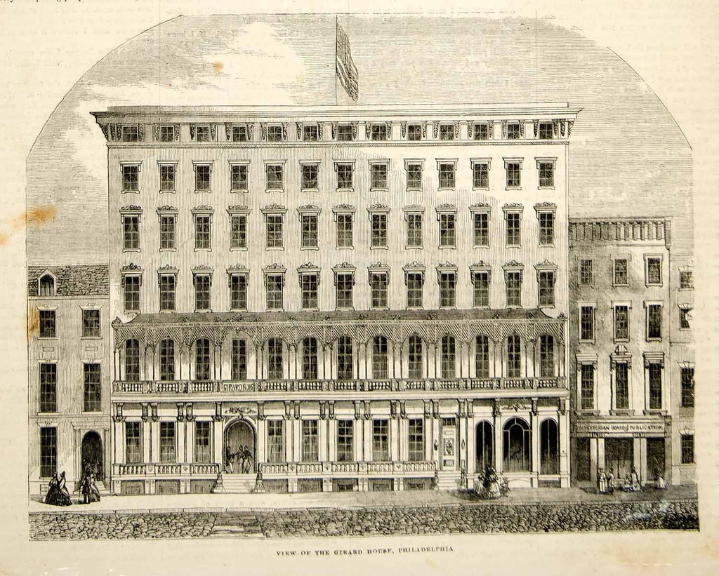 1852 Wood Engraving Art Stephen Girard House Estate Philadelphia PA City YGP1