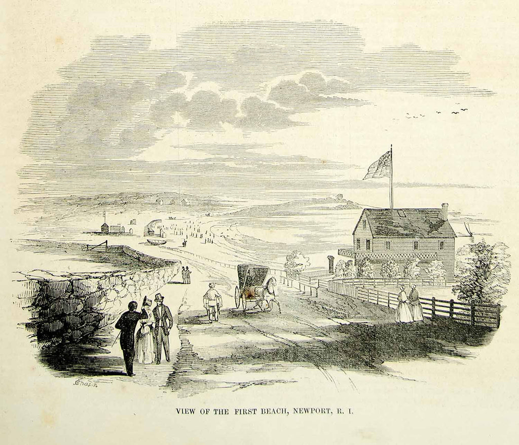1852 Wood Engraving Chapin Art First Beach Newport Rhode Island Cityscape YGP2
