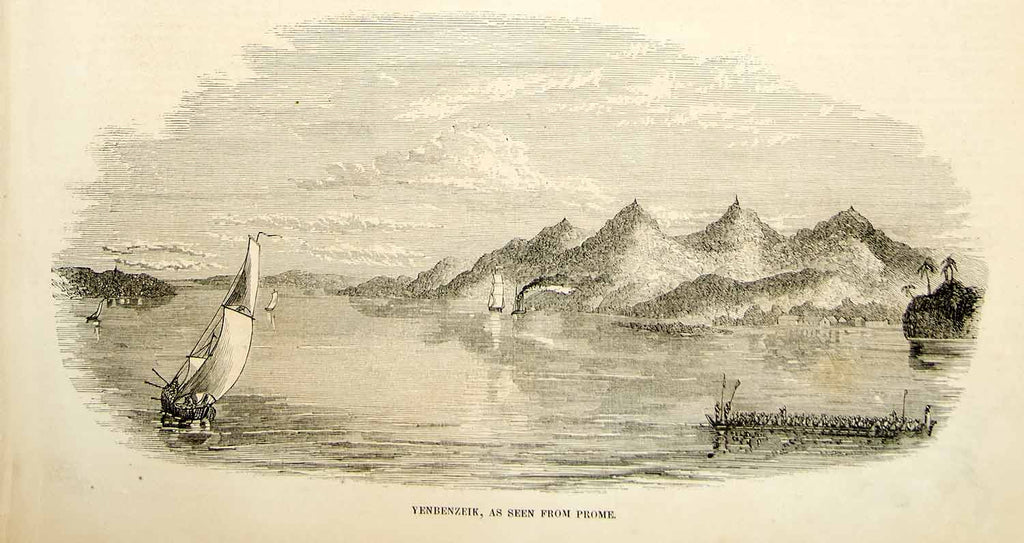 1852 Wood Engraving Burma Myanmar Yenbenzeik Irrawaddy River Ayeyarwady YGP2