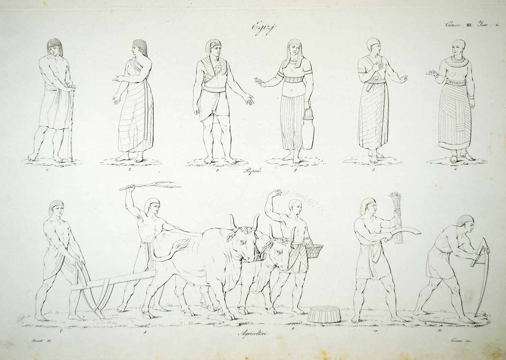 1833 Copper Engraving Busato Art Ancient Egypt Costume Farming Agriculture ILC1