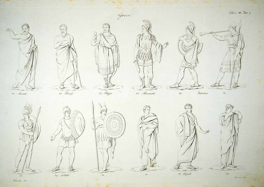 1833 Copper Engraving Busato Art Ancient Greece Costume Alexander Great ILC1