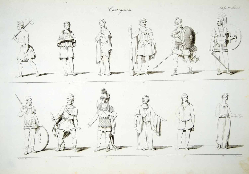 1833 Copper Engraving Bosa Art Ancient Carthage Phoenician Warrior Costume ILC1