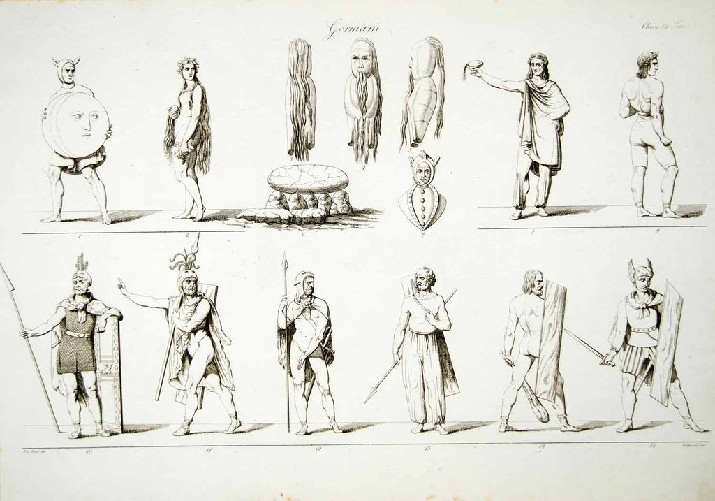 1833 Copper Engraving Bosa Art Ancient Germanic Costume Gods Warriors Nude ILC1