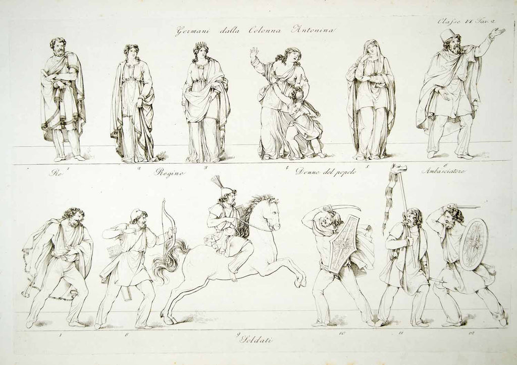 1833 Copper Engraving Art Ancient Germanic Costume Royalty Military Soldier ILC1