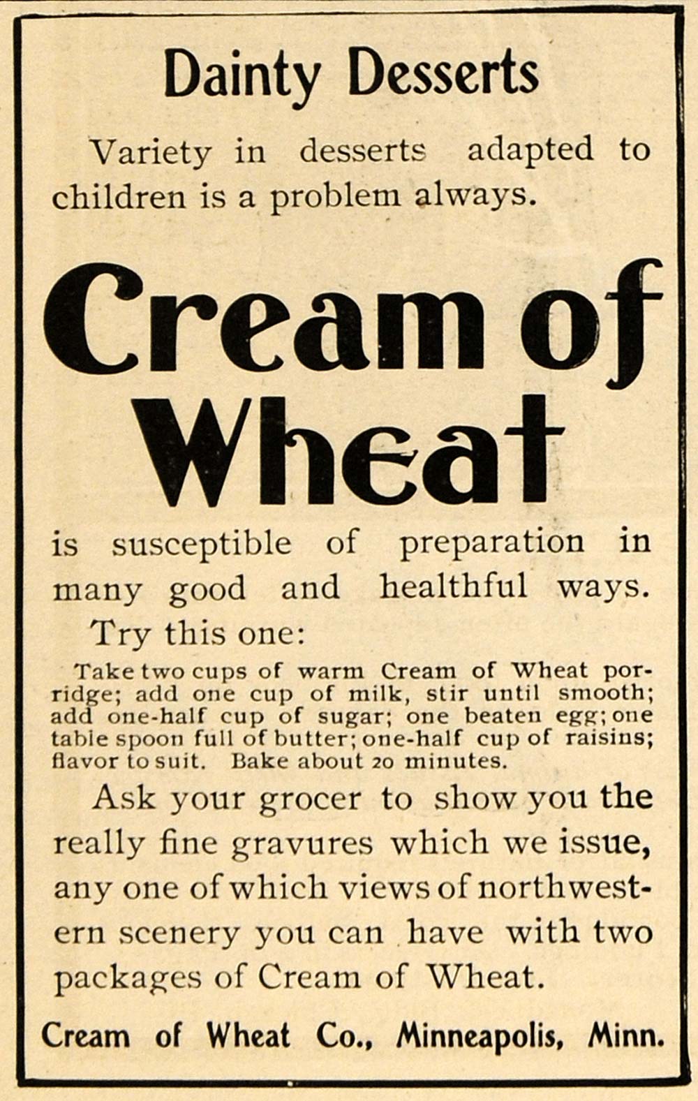 1900 Ad Cream of Wheat Co Dainty Dessert Food Minnesota - ORIGINAL TOM3