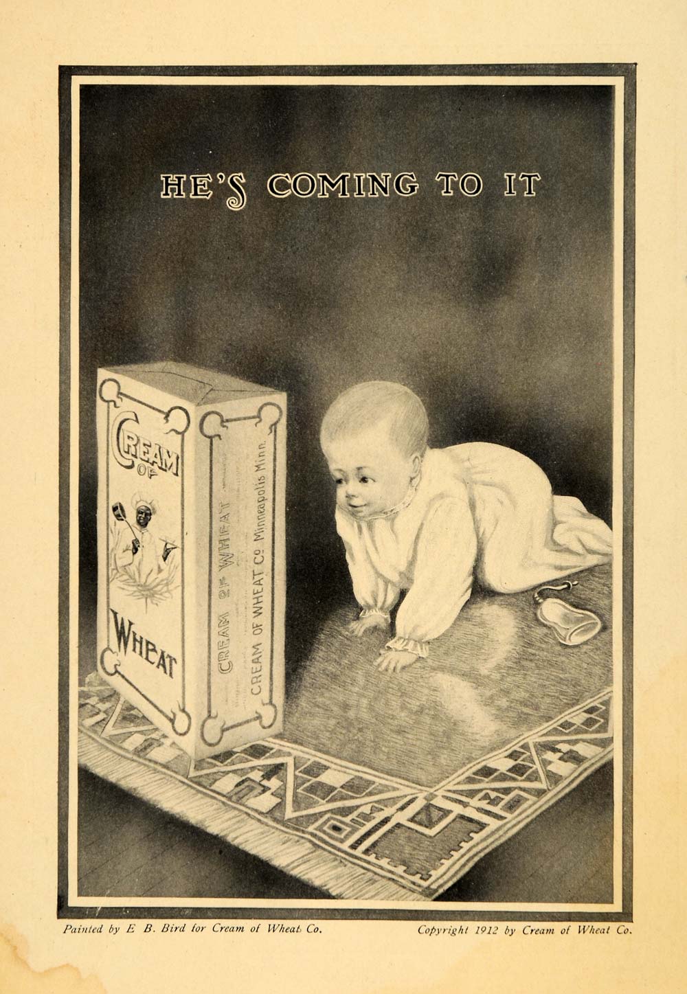 1912 Ad Cream of Wheat Rasmus Baby Crawling EB Bird Art - ORIGINAL GH3