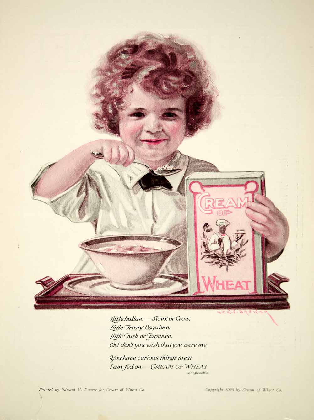 1918 Ad Vintage Cream of Wheat Cereal Child Eating Poem Edward V Brewer Art YNM6