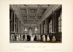1845 Steel Engraving F Mackenzie Goldsmiths Hall Victorian Ball Night XGHD9