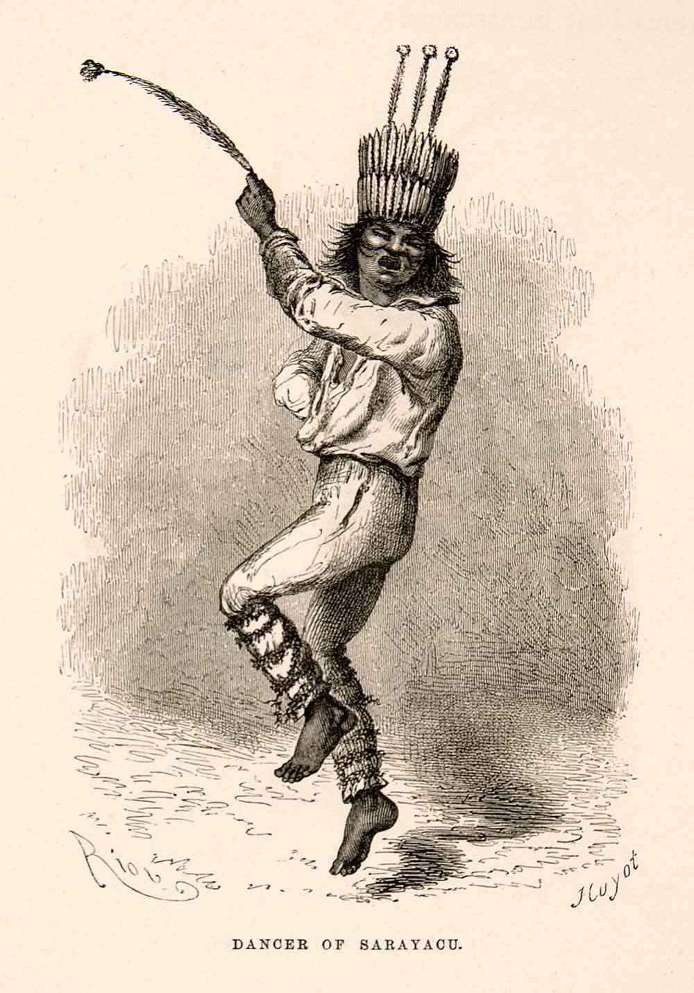 1875 Wood Engraving Dancer Sarayacu Native Costume South America XGHC1