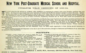 1894 Ad Post Graduate Medical School Hospital NY Faculty Listing 226 E 20th YBM2