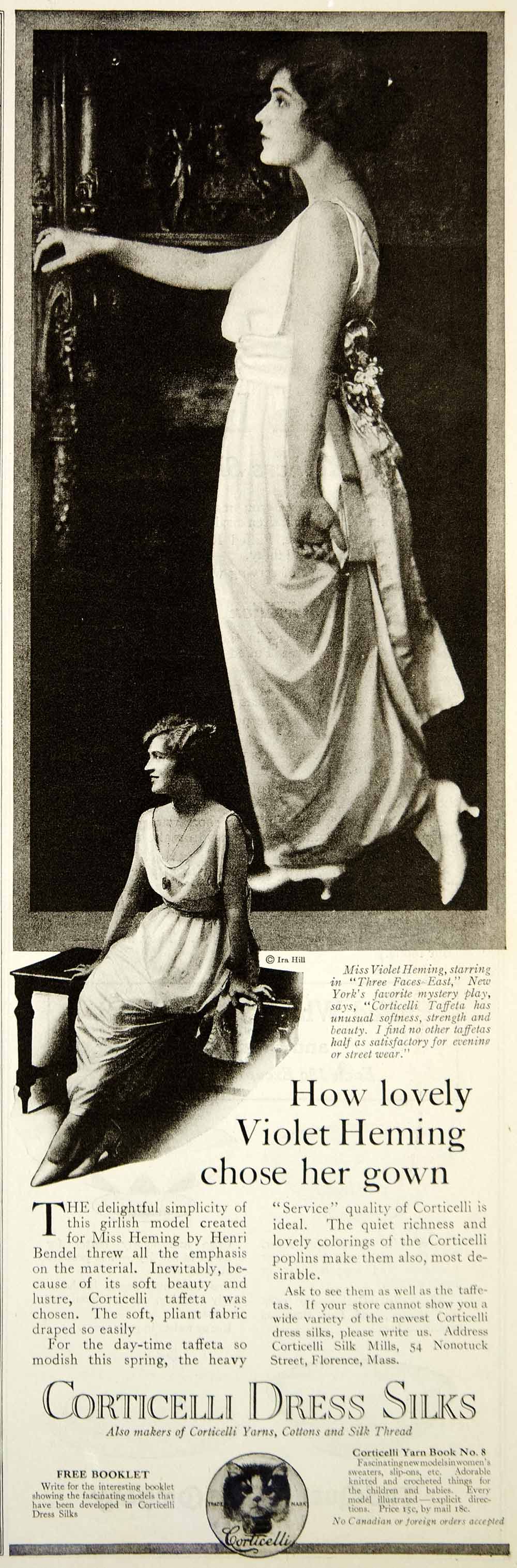 1919 Ad Vintage Corticelli Dress Silks Fashion Violet Heming Stage Movie Actress