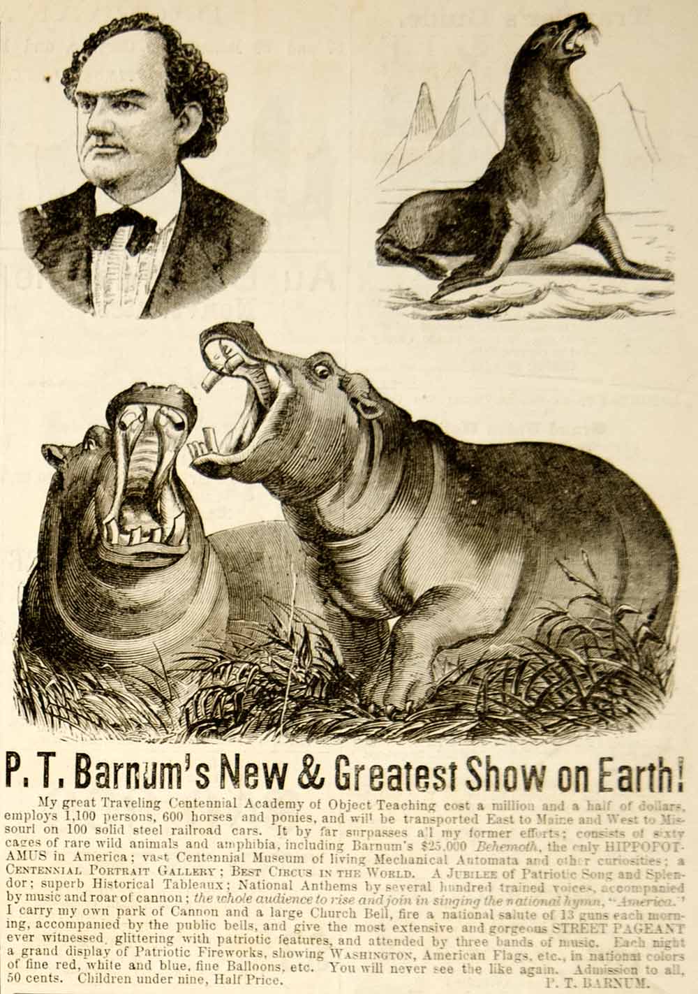 1876 Ad Antique P. T. Barnum Greatest Show on Earth Circus Hippotumus Hippo Seal