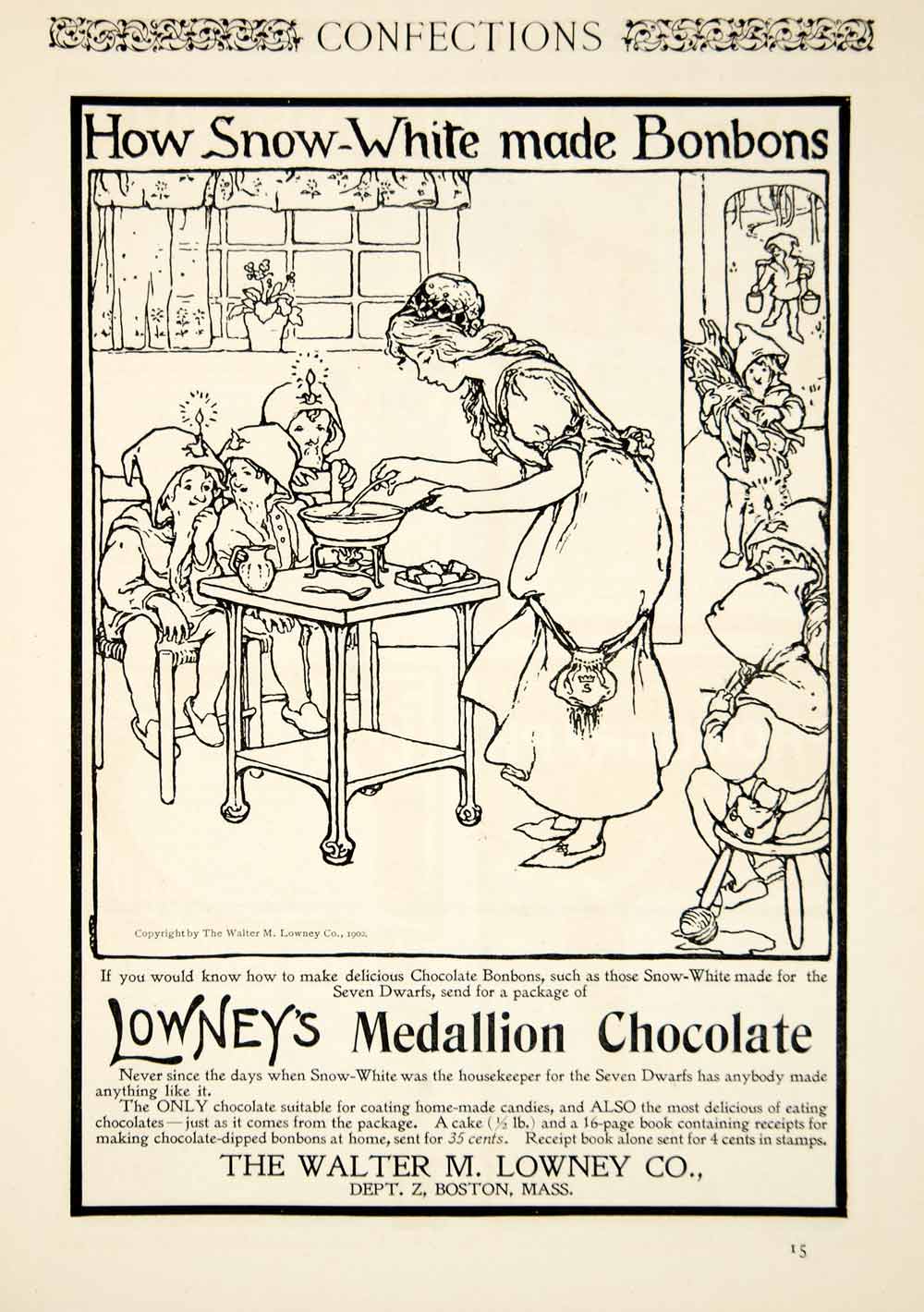 1902 Ad Lowney's Medallion Chocolate Snow White Seven Dwarfs Candy Bonbon YSN2