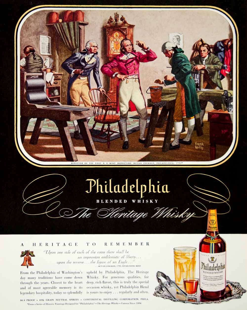 1947 Ad Philadelphia Heritage Blended Whisky Frank Reilly Liberty Bell US FTM