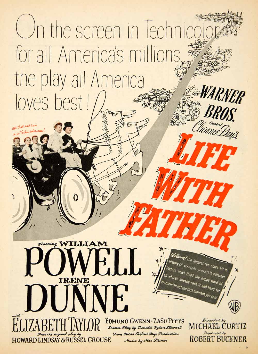 1947 Ad Life With Father Warner Bros William Powell Irene Dunne Elizabeth MOV1