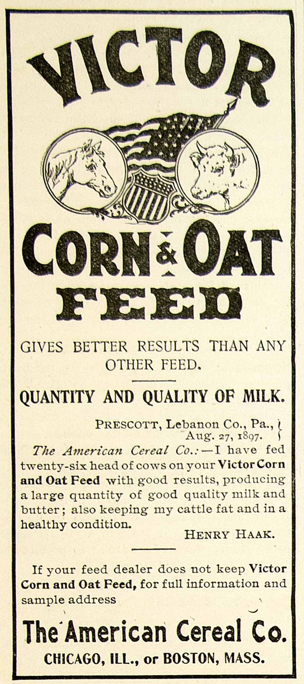 1898 Ad Victor Corn Oat Feed Agricultural Farming American Cereal Henry Haak CG3