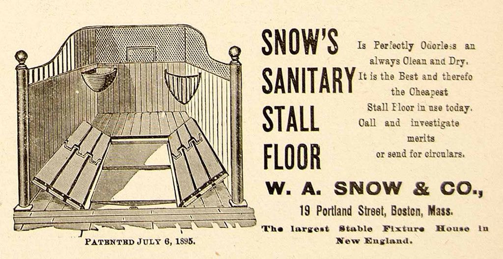 1896 Ad W. A. Snow Sanitary Horse Stall Floor Stable 19 Portland St Boston YAHB1