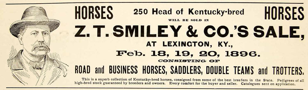 1896 Ad Z. T. Smiley Horse Sale Lexington Kentucky Saddlers Trotters Teams YAHB1