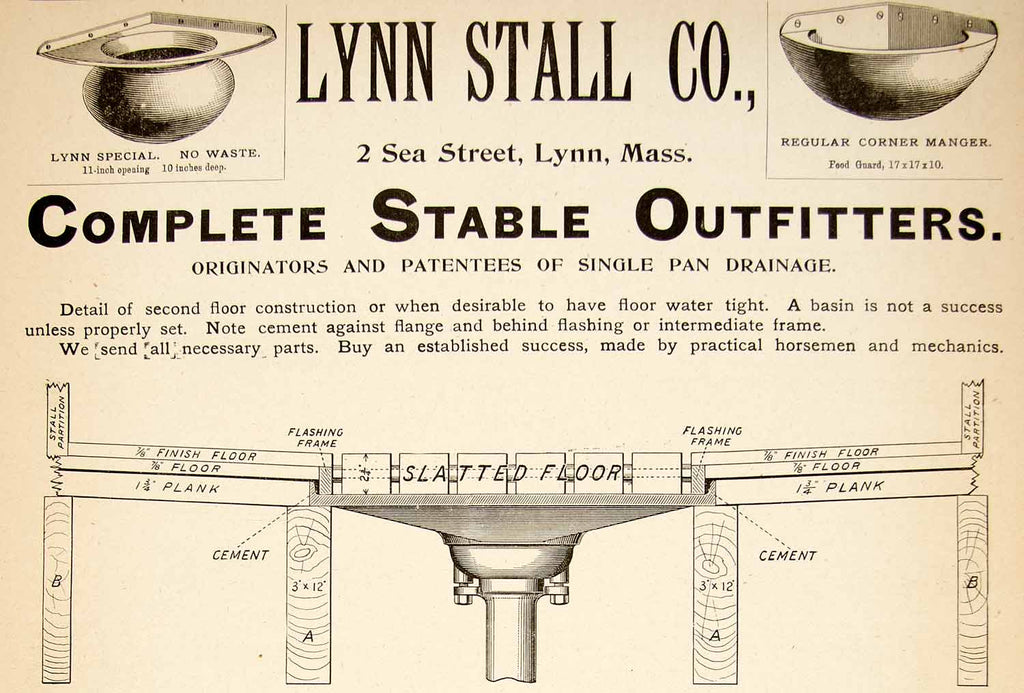 1896 Ad Lynn Stall Co. 2 Sea St. MA Horse Stable Outfitters Construction YAHB1