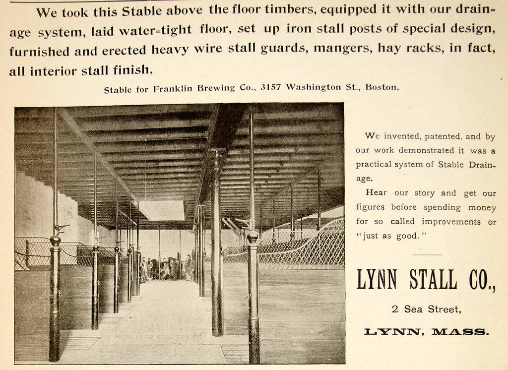 1896 Ad Lynn Stall Horse Stable Drainage Interior Franklin Brewing Boston YAHB1
