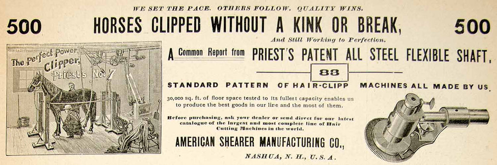 1896 Ad Priests No. 7 Horse Clipper Grooming Machine American Shearer Co. YAHB1