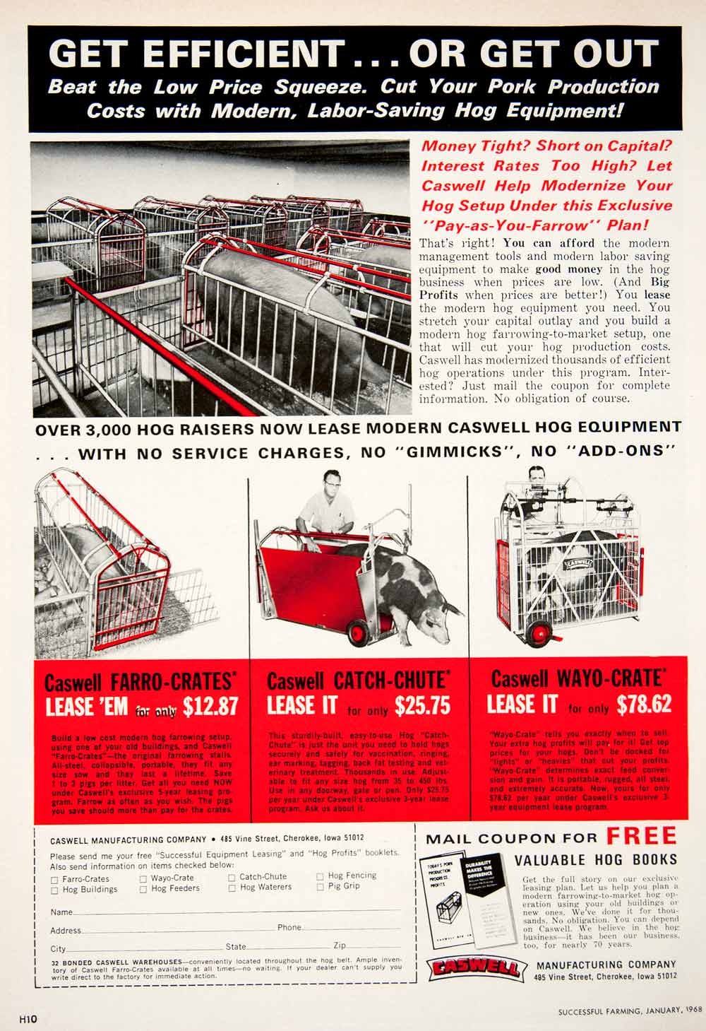 1968 Ad Caswell Manufacturing Cherokee Iowa Hog Pig Pen Pork Farro Crate SF1