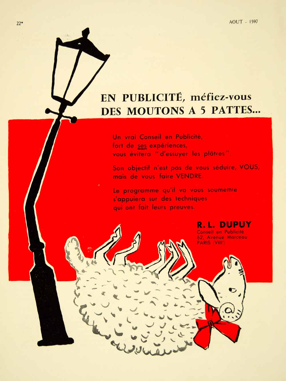 1957 Ad R L Dupuy French Advertisement Ram Publicite Paris France VENA6
