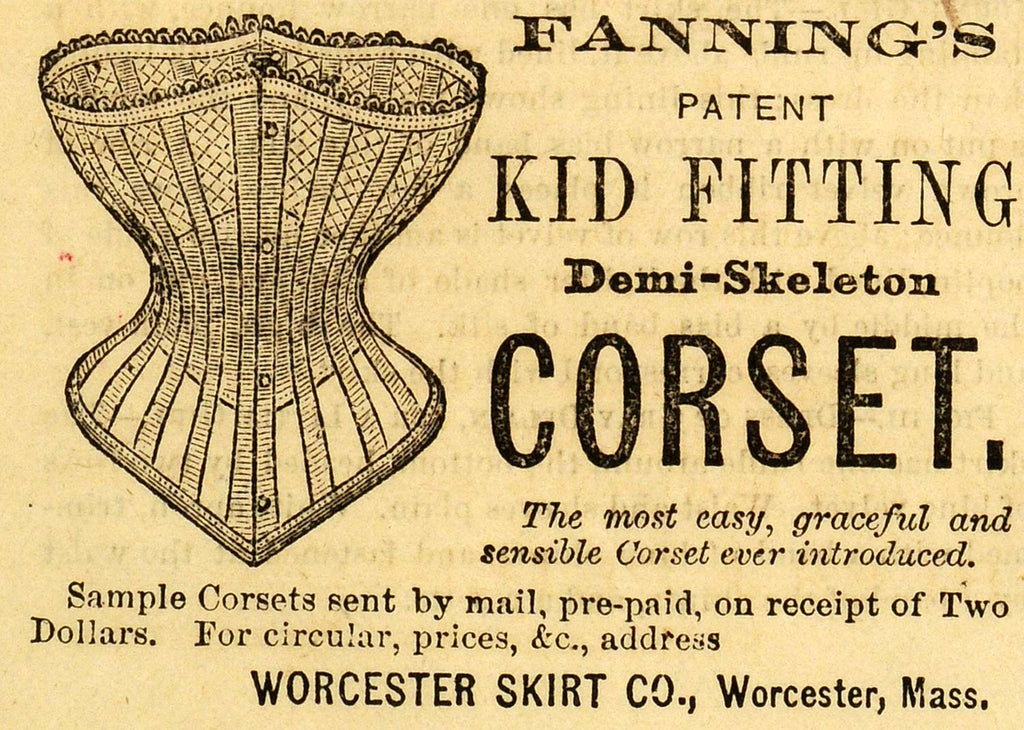 1871 Ad Fannings Patent Kid Fitting Demi-Skeleton Corset Worcester Skirt PEM1