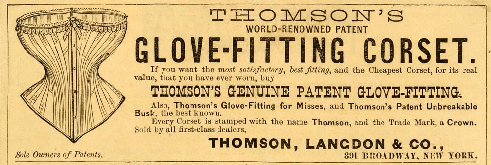 1871 Ad Thomson Langdon Glove Fitting Corset Genuine Patent Crown Mark PEM1