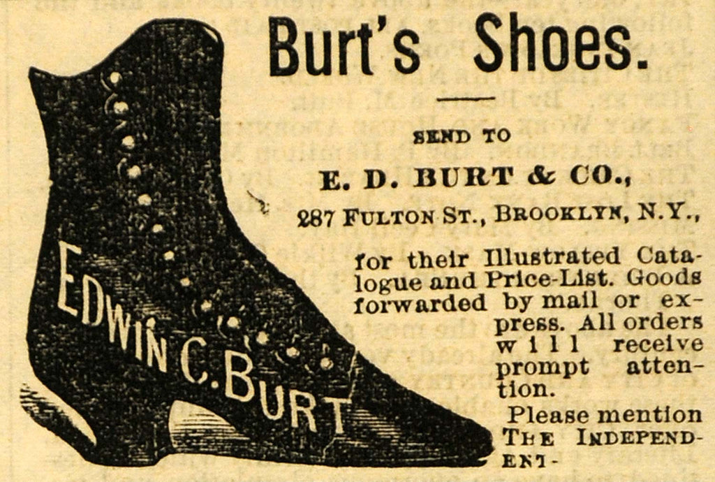 1882 Ad Edwin C. Burt Shoes Boots Fashion Brooklyn - ORIGINAL ADVERTISING TIN6