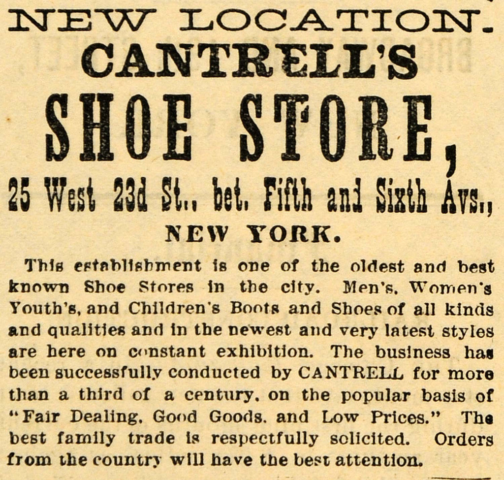 1882 Ad Cantrell's Shoe Store Fashion New York - ORIGINAL ADVERTISING TIN6