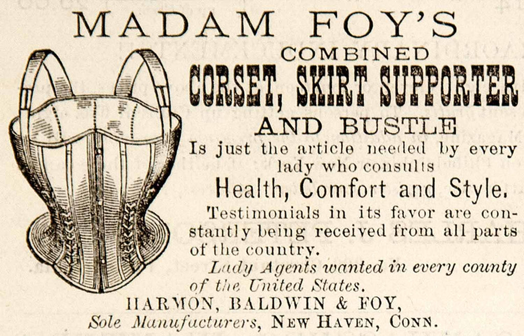 1870 Ad Madam Foy's Corset Skirt Supporter Bustle New Haven CT Victorian YPM3