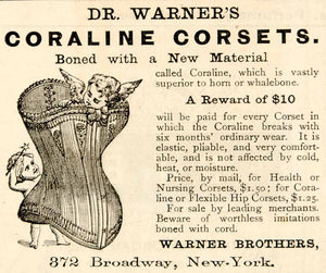 This is an original 1881 black and white print ad for Dr. Warner's Coraline Corsets