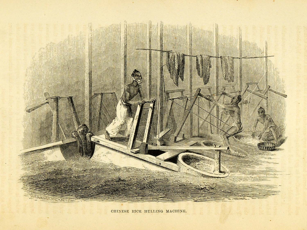 1857 Wood Engraving Antique Chinese Hulling Machine M. C. Perry Japan XGA5